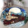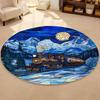 Round Stained Glass Style Moonlight Train Rug Dreamy Fairy Tale Non-slip Absorbent Carpet Winter Home Decor Mat for Living Room