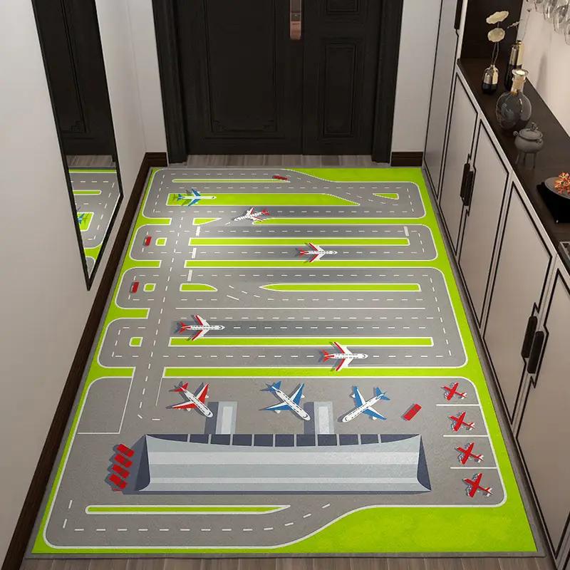 Kids Play Mats Cartoon Airport Landing Strips Top View Aircraft and Airplane Arrival Carpet Kids' Bedroom Playroom Nursery Decor