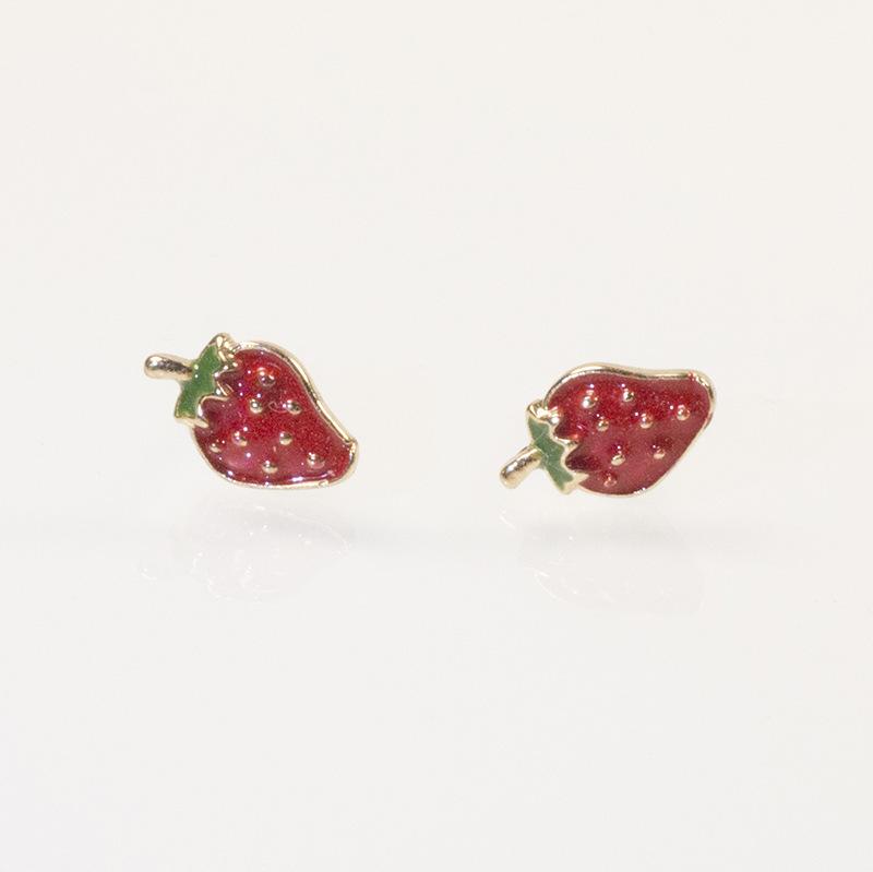 S925 silver needle strawberry stud earrings simple summer fruit earrings women's new oil dripping fruit earrings trendy earrings