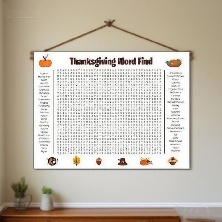 Unforgettable Party Experience: The thanksgiving word search poster measuring an impressive 36 inches x 24 inches, will make your gathering memorable! Ideal for family reunions and holiday parties, this giant word search game features 50 hidden words related to festive themes