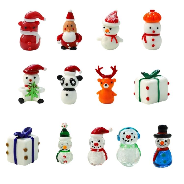 Holiday Miniature Glass Snowman Reindeer Santa Sculpture Tabletop Shelf Decoration For Christmas Display Party Gift