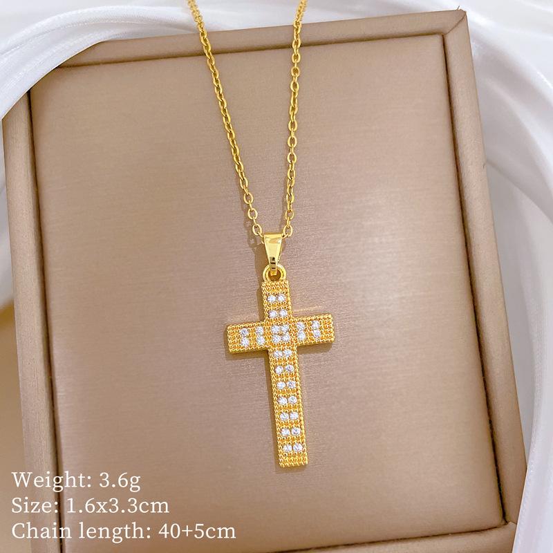 Titanium Steel, Cross Zircon Light Luxury Temperament Gorgeous Full Diamond Necklace Female Versatile Collarbone Chain Titanium Steel