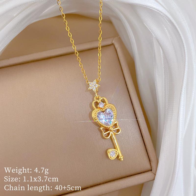 Bow Key Light Luxury Temperament Gorgeous Full Diamond Necklace Women'S Versatile Collarbone Chain Titanium Steel Chain