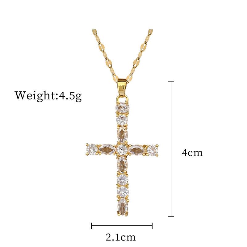 Heavy Industry Cross Light Luxury Temperament Gorgeous Full Diamond Necklace Women'S Versatile Clavicle Chain Titanium Steel Chain
