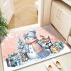 Christmas Gnome Snowman Tree Pattern Doormat Pink and Blue Color Scheme Non Slip Entrance Rug for Living Room Bedroom Decor