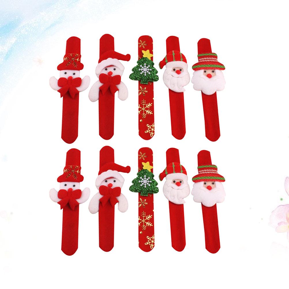 10pcs Kids Snap Bracelet Christmas Santa Snowman Elk Design Slap Wristband Party Favor Gift For Children Christmas Snap