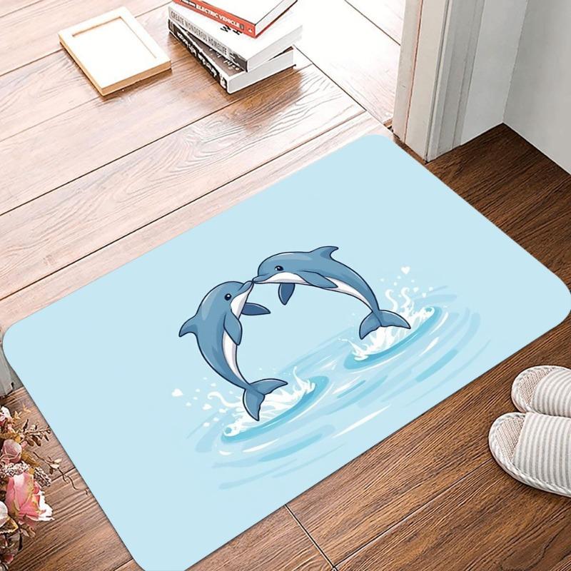 Kissing Dolphin Printing Non-Slip Small Rug Waterproof Easy To Clean Floor Mat for Indoor Outdoor Use Durable Home Decor Fashion
