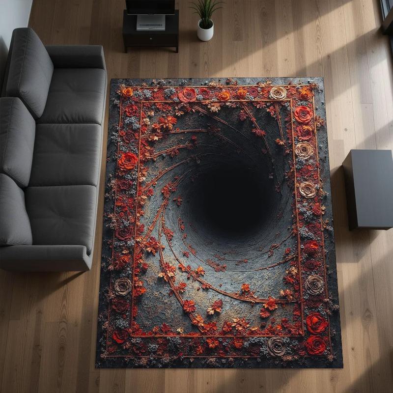 Floral Swirl Optical Illusion Rug Deep 3D Black Hole Rug Unique Home & Office Decor Trippy Aesthetic Floor Mat Living Room Rug