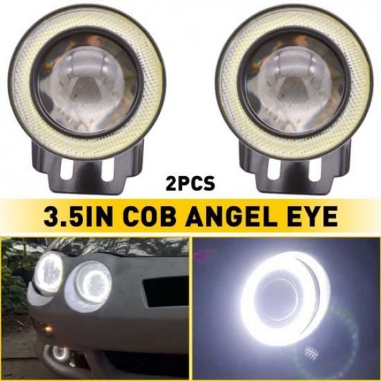 Universal 2Pcs 3.5" Round Projector LED DRL Halo Angel Eyes Fog Lights Lamp