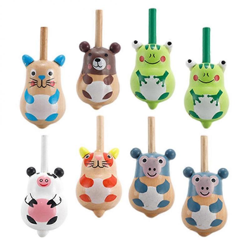 8Pcs Animal Wooden Gyro Toy Wood Rotary Tops Chinese Traditional Toy Wooden Gyro Toys (Mixed Style)