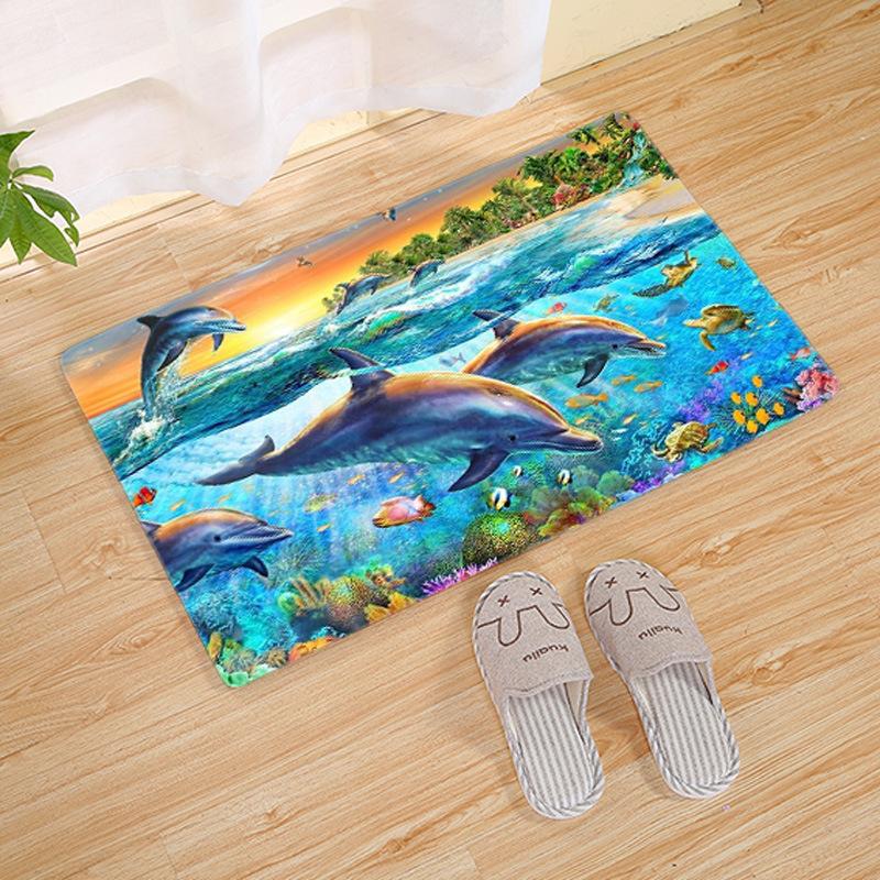 Tropical Island Dolphin Jumping Carpet Mat Underwater Coral Reef Fish Pattern Rug Home Decoration Indoor Floor Mats Mats