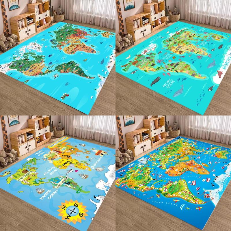 Animal World Map Printing Large Area Rug Non-Slip Wear-resistant Carpet for Living Room Bedroom Soft Floor Mat Home Decor Cute