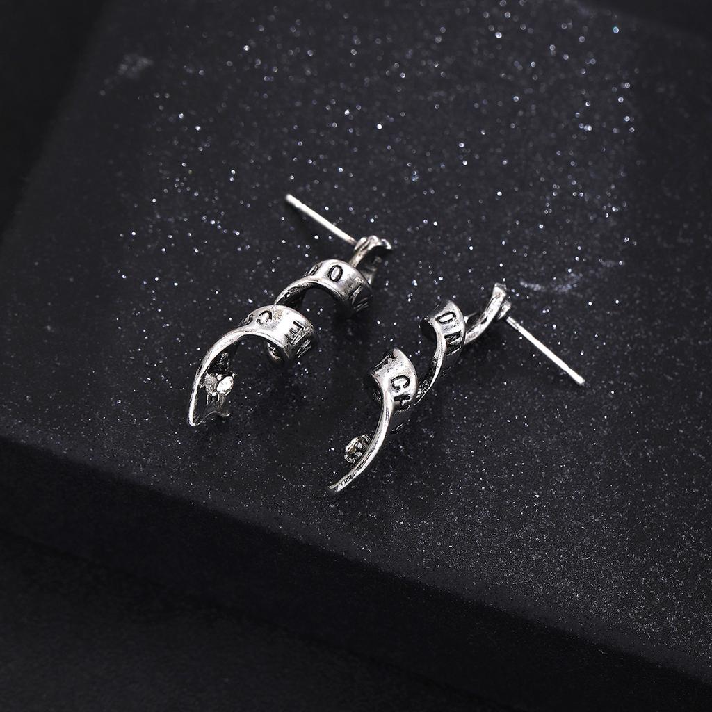 Diamond-Encrusted Letter Spiral Stud Earrings For Women, Niche Light Luxury High-End Sense Fashion Personality Cold Wind Earrings