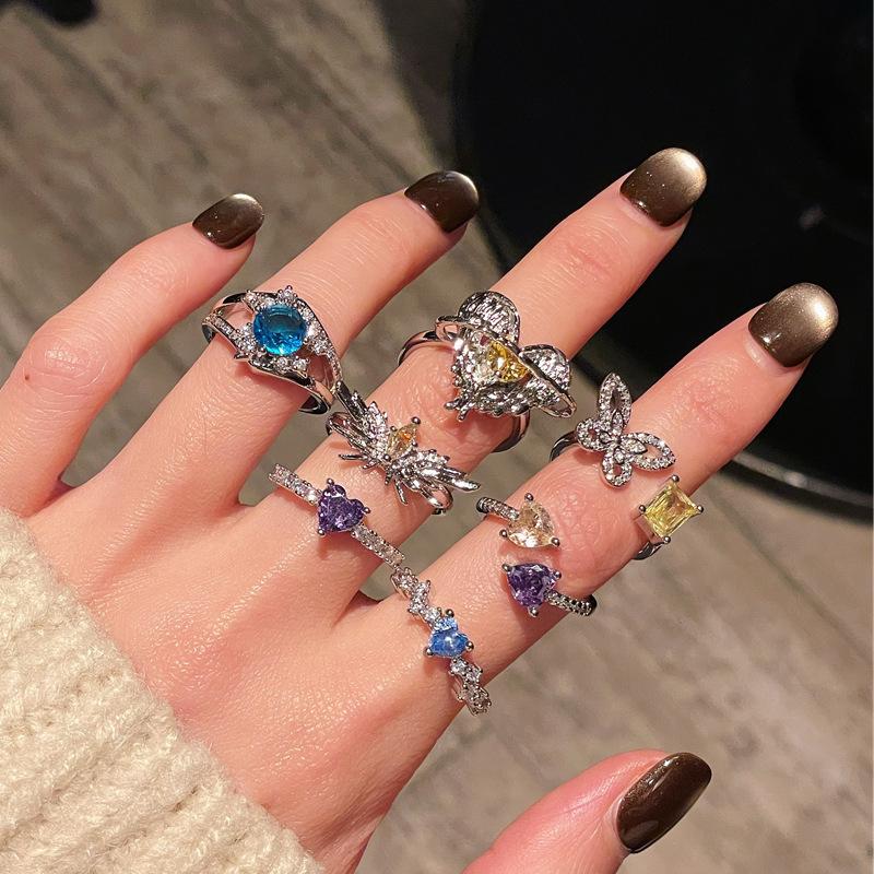 Light Luxury High-End Love Color Treasure Series Zir*****Pen Ring Niche Full Of Diamonds Personality Exquisite Elegant Ring Woman