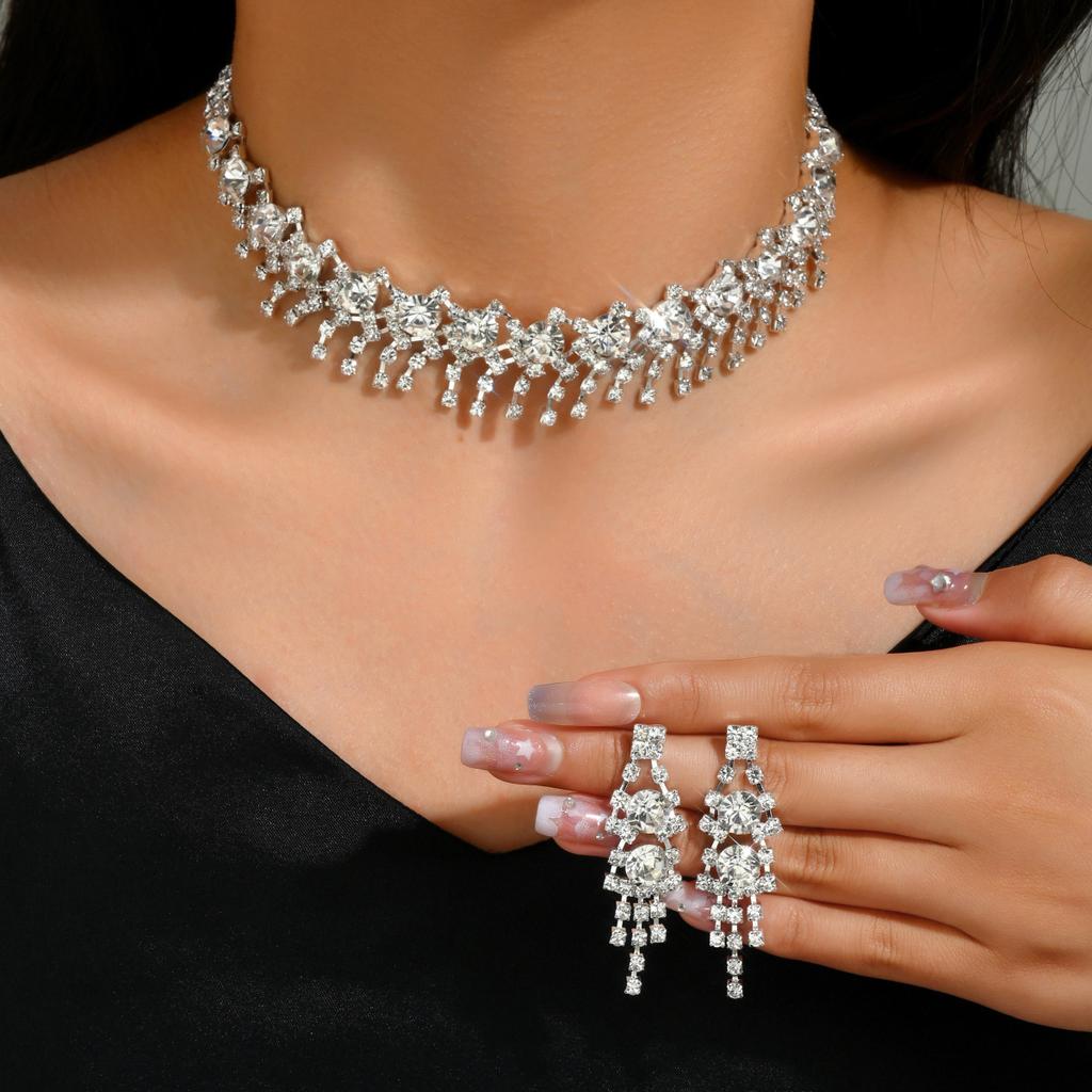 Bridal Jewelry Set Fashion Claw Chain Rhinestone Necklace Earrings Set Women'S Dinner Dress Clavicle Chain