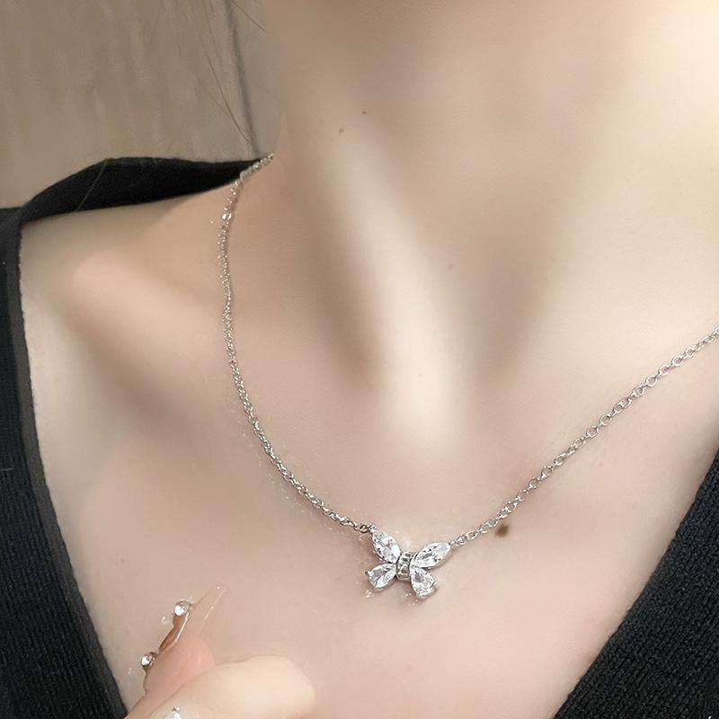 Niche Design Ring Cold Wind Slightly Inlaid Zircon Bow Necklace High-End Light Luxury Stud Earrings Set