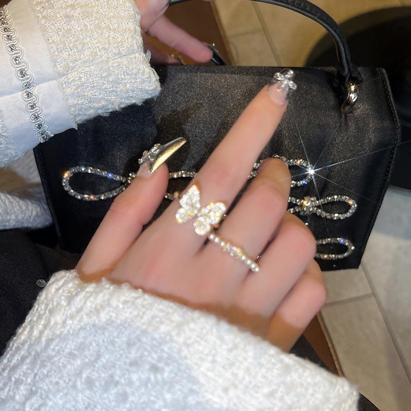 Butterfly Niche Design Open Ring Female Cold Wind Advanced Trendy Cool Flash Diamond Light Luxury Personalized Index Finger