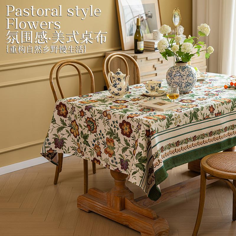 Vintage Embroidery Flower Embroidery Hemming Tablecloth French Pastoral Embroidery Table Cloth Rectangular Coffee Table Cover Tablecloth