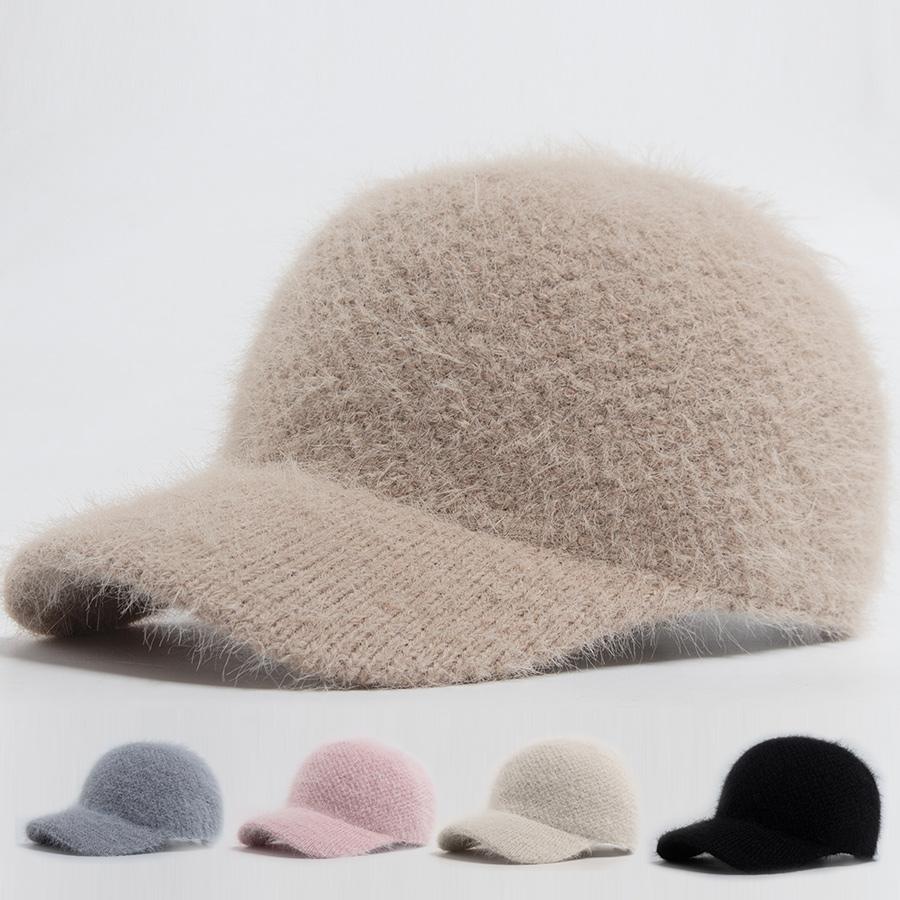 Knitted Faux Rabbit Fur Baseball Cap Women Fashion Autumn Winter Warm Hat For Ladies Female Casual Caps Woman Adjustable New