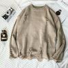 Erkekler Kadınlar Sokak Hip Hop Kazaklar Jumper Moda Büyük Boy Tüm Maç Erkekler Bahar Yıkama Delik Yırtık Örgü Kazak