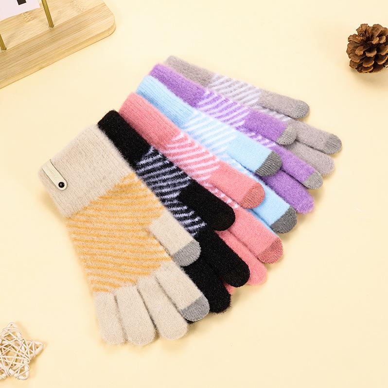 Winter Warm Touchscreen Five-Finger Gloves for Men and Women Fleece-Lined Thickened Knitted Wool Cycling Gloves Fashionable Cold-Weather Protection