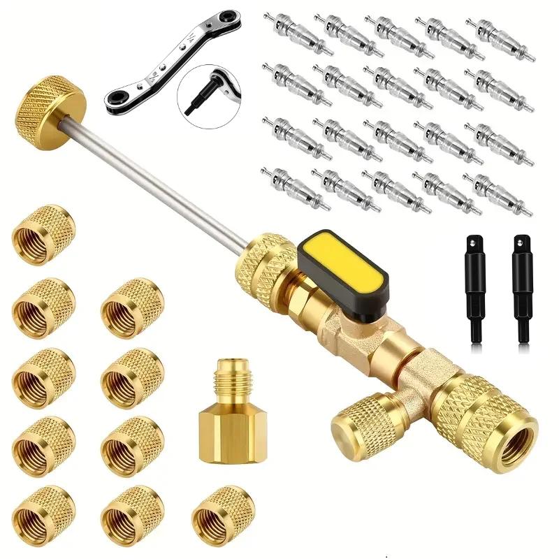 Valve Core Remover Installer Tool, R410A R22 AC Schrader Valve Core Remover, Dual Size 1/4" & 5/16" Port HVAC Valve Core Removal