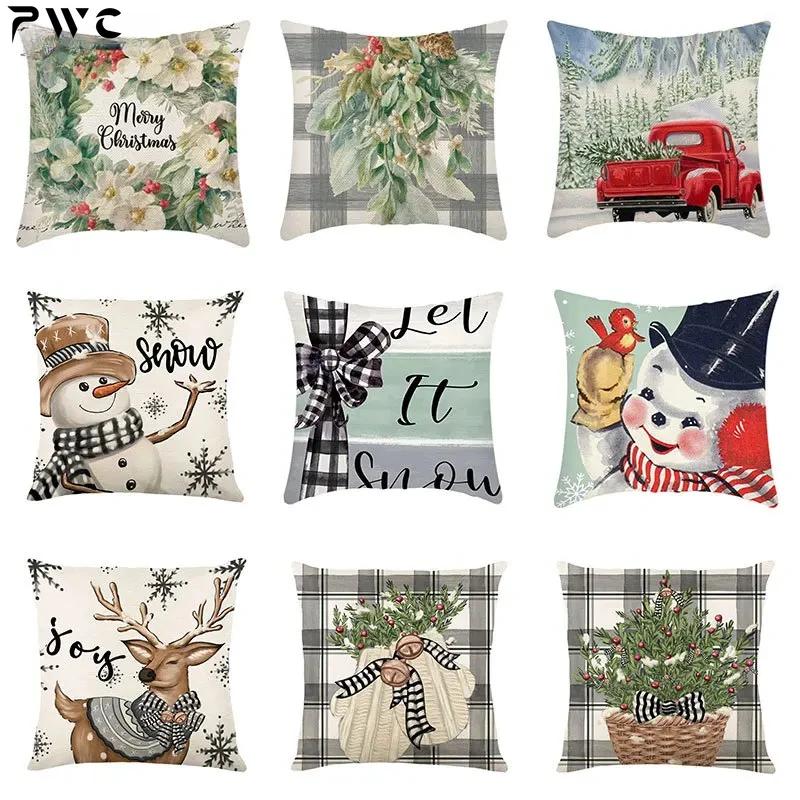 40/45cm Christmas Cotton Linen Decorative Navidad Elk Snowman Santa Tree Cushion Cover Sofa Pillow Case