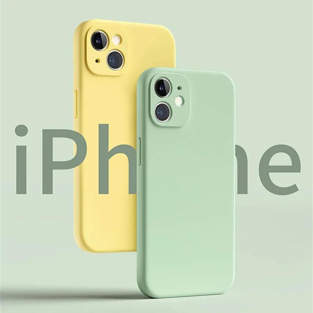 New Yellow iphone Case 12 13 Mini X XR XS SE 7 8 14 15 16 Plus Liquid Silicone Cover For Apple iPhone 16 15 14 13 12 11 Pro Max