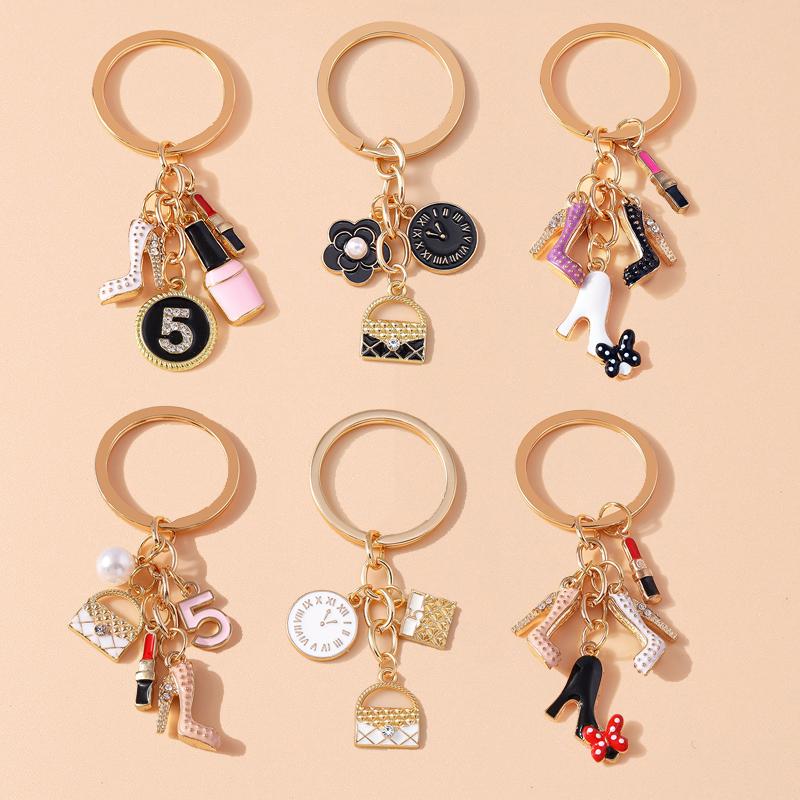 Pretty Enamel Simulation High Heels Key Chain Lipstick Key Ring Pendant for Women Girls Handbag Decor DIY Jewelry Gift