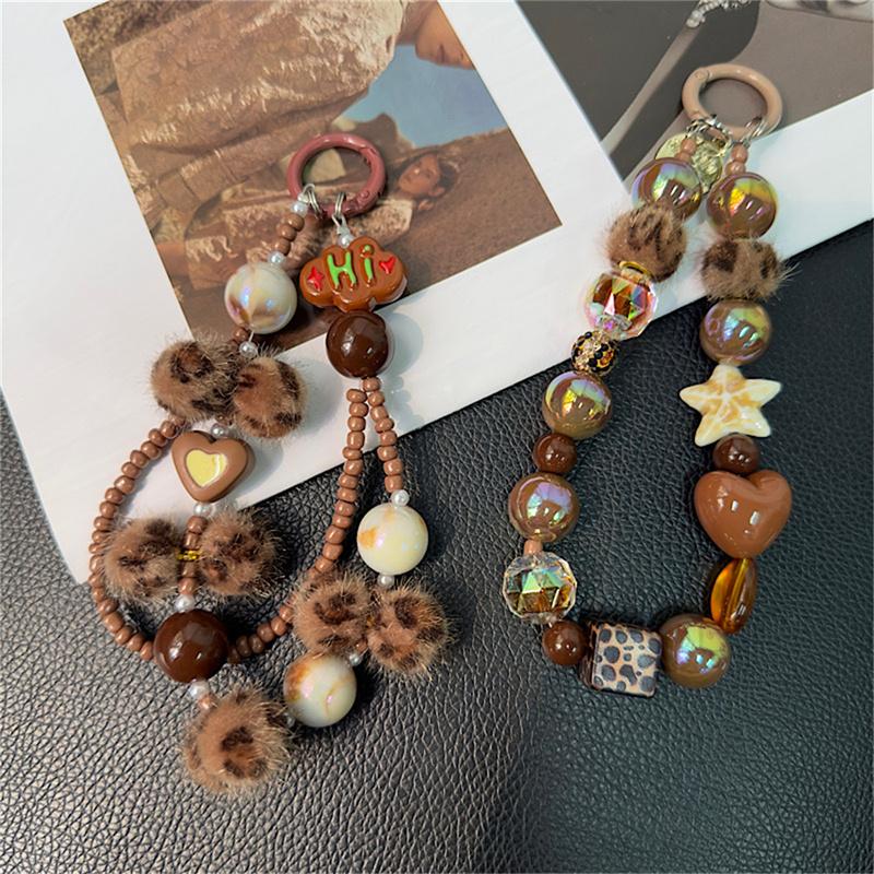 1pc Luxury Leopard Print Rhinestone Star Bracelet Pendant Simplicity Plush Short Phone Strap Style Phone Earphones Chain Pendant