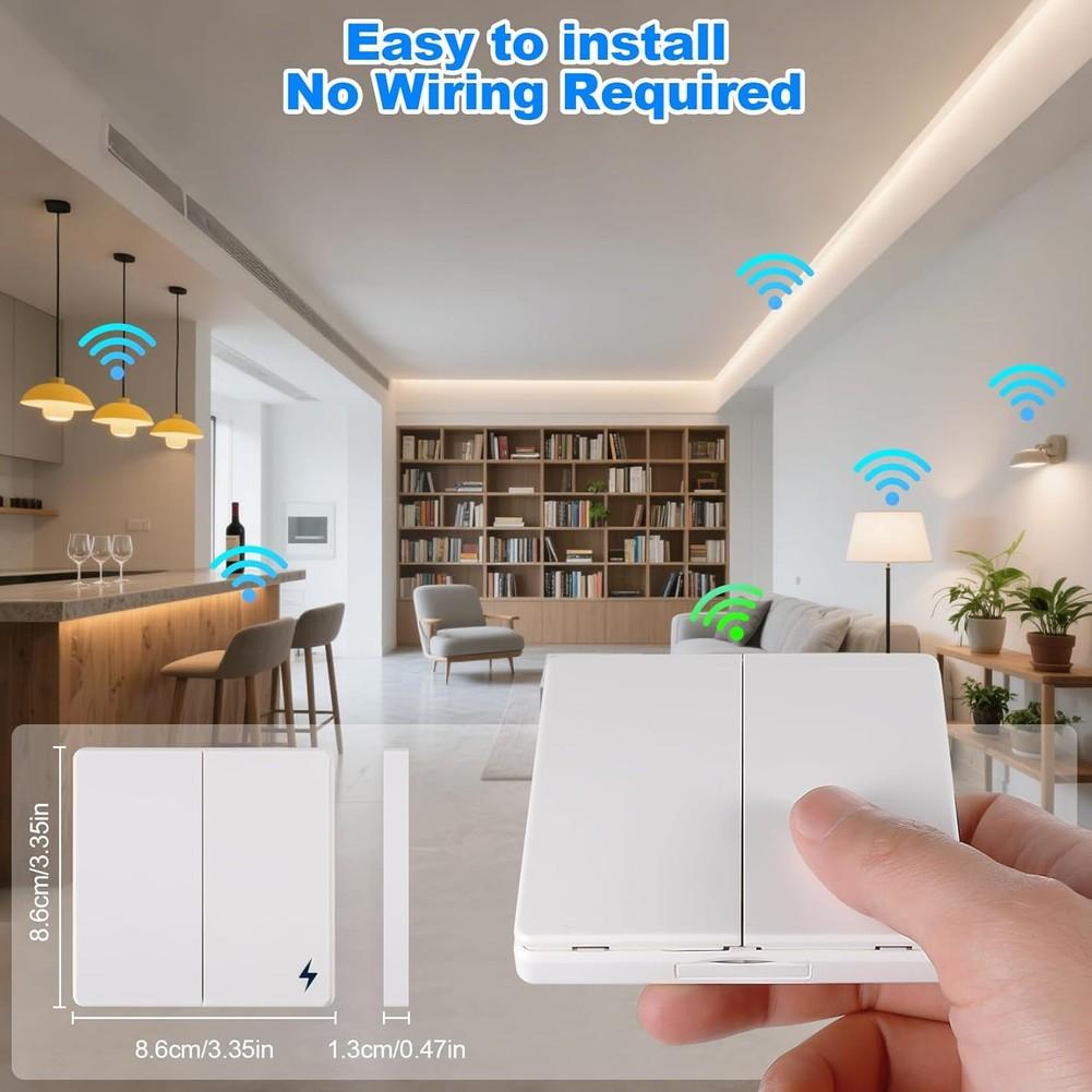 Wireless Light Switch Kit Featuring 86 Wall Panel and 16A Relay Receiver Supporting Multiple Wireless Switches for Shared Use