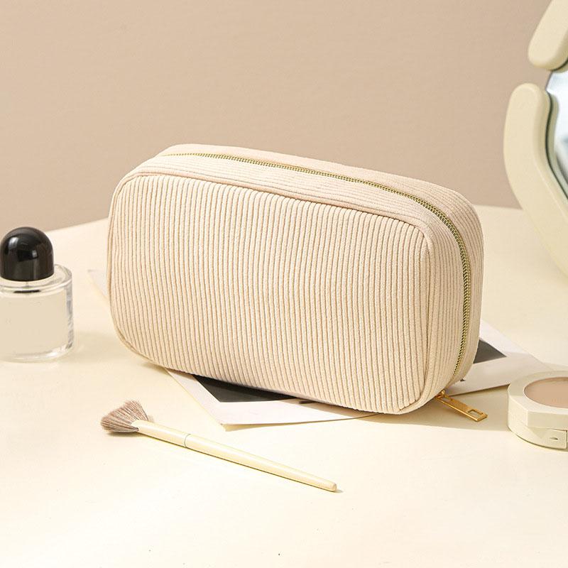 Travel Cosmetic Bag Corduroy Fabric Portable Makeup Storage Case for Toiletries Electronics Compact Lightweight Handheld