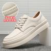 New leather men's white lace-up sneakers fashionable versatile casual durable heightening platform shoes