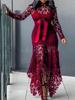 New Women's Outwear Dress Wish Lace Hollow Long Sleeve Stand Collar Tie Waist 5 Colors Irregular Dress
