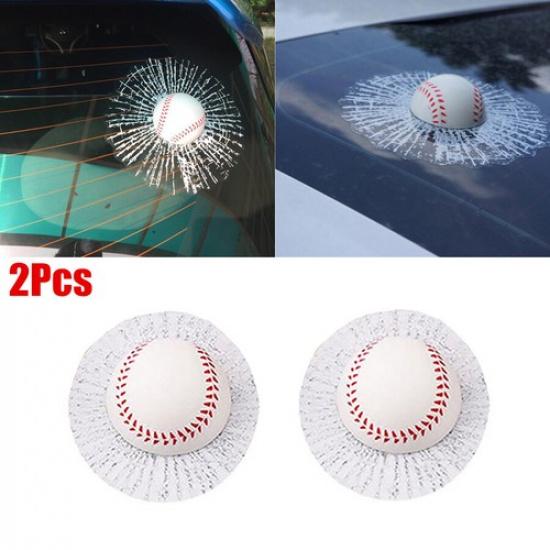 2Pcs 3D Vivid Car Window Body Windshield Baseball Hit Crack Decal Sticker House