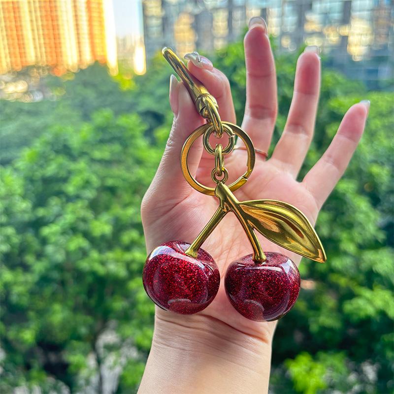 Cherry Charm Handbag Pendant Keychain for Women's Exquisite Internet-famous Crystal Cherry Bag Accessories High-Grade Pendant