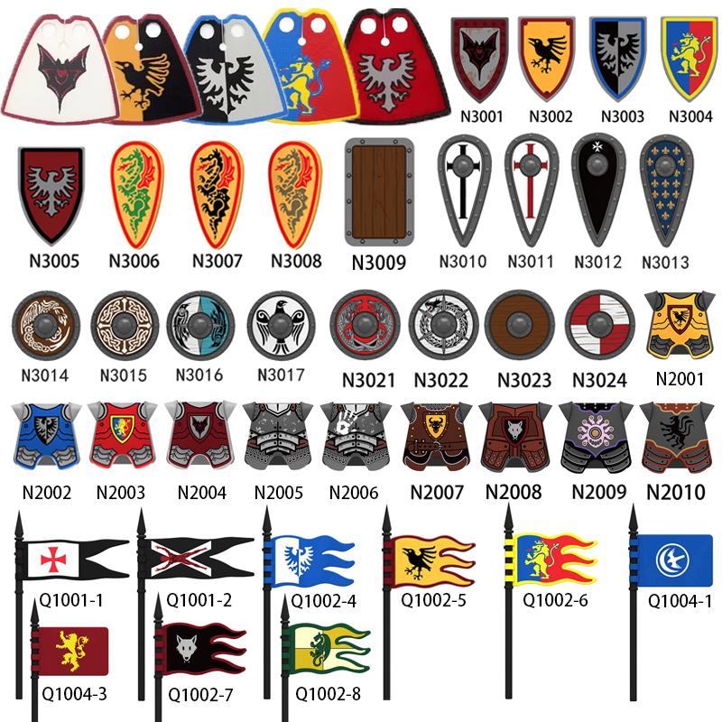 Medieval Knights Figures Accessories Building Blocks Officer Cloak Helmet Cape Armor Shield Black Eagle Red Lion Toys MOC Bricks