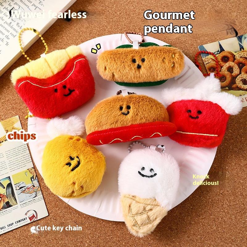 Creative Cute Burger Potato Chip Doll Keychain Bag Pendant Couple Girl Plush Hanging Ornament Gift Bag Accessory