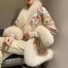 Women's Chinese-style Long Imitation Fox Fur Coat with Satin and Beaded Cape Winter