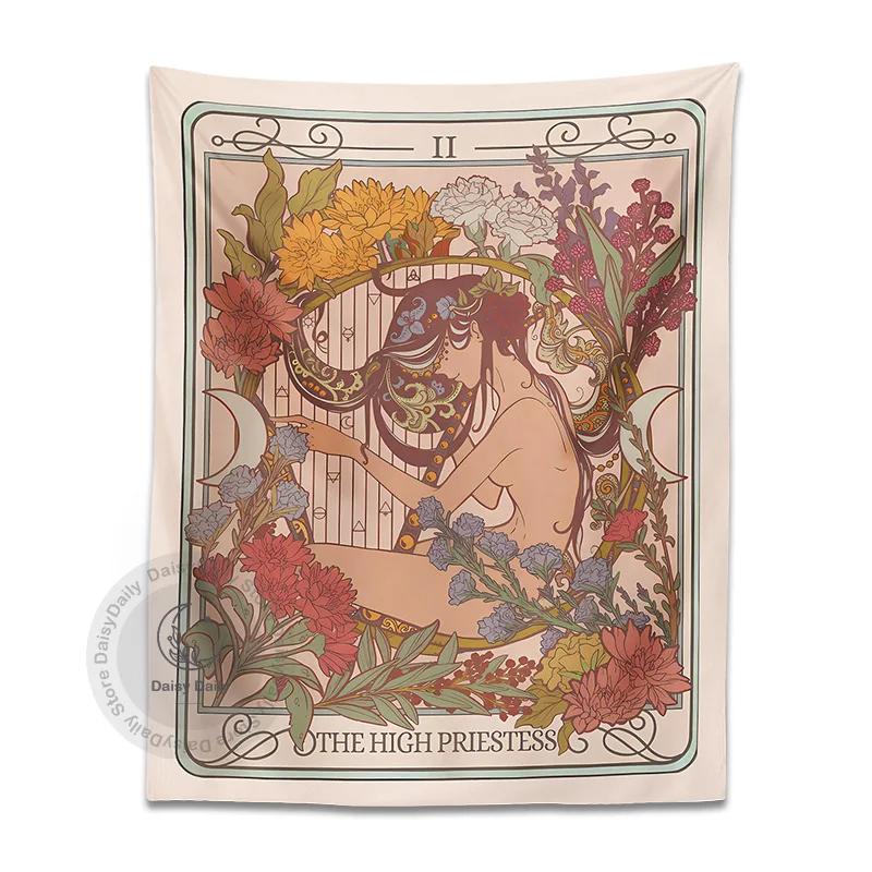 The High Priestess Tarot Tapestry Wall Hanging Trippy Witchy Cottagecore Boho Decoration Hippie Mattress Girls Dorm Room Decor