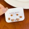 Mini Sterling Silver Cartoon Stud Earrings - Cute Autumn Winter Caramel Bread Design