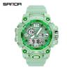 Sanda Men's Multifunctional Waterproof Green Light Countdown Watch - Korean Style with Transparent Design and Alarm.