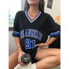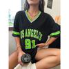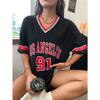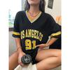 Women's Large Printed T-shirt Los Angeles 91 Letter Short Sleeve V-neck Loose Street Wear Sports Jersey Top