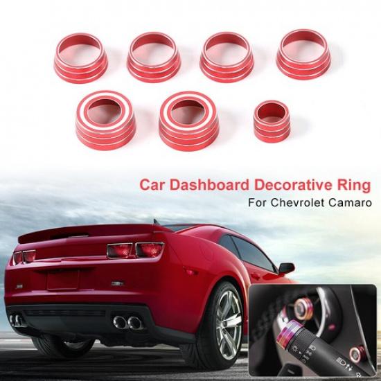 7pcs Red Air Vent & Headlight Button Ring Cover Trim For Chevrolet Camaro 2017+