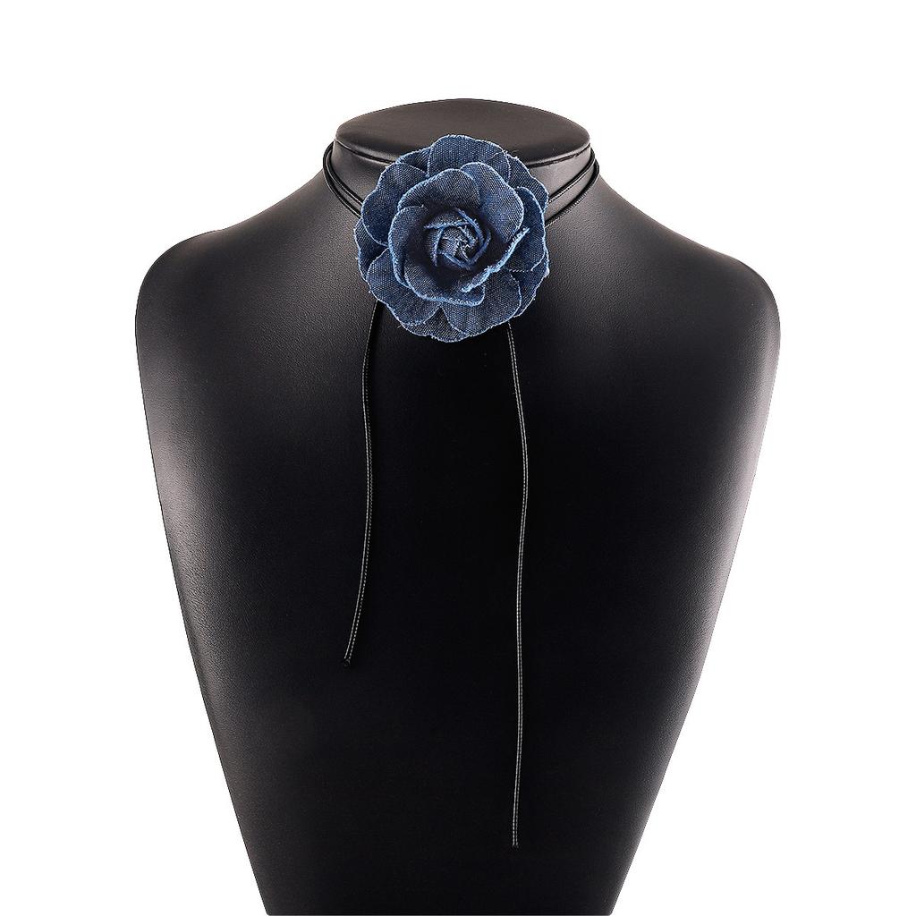 261 French small fragrant denim blue rose necklace, retro spice girl strap choker collarbone chain