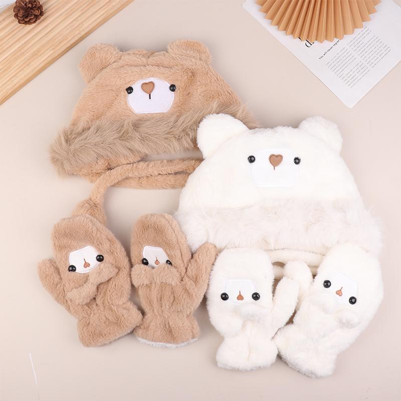 Winter Cartoon Cute Plush Hat Small Bear Raven Hat Women'S Outdoor Fashionable Warm Ear Protection Pullover Hat