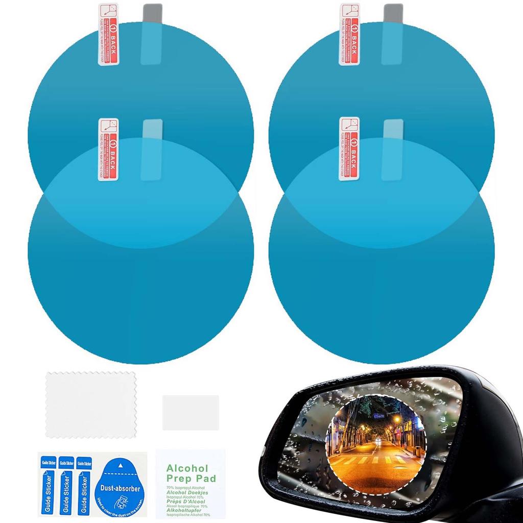 PAVIKE Car Mirror, Waterproof Film, 4 Pieces, Car Mirror, Waterproof, Anti-Fog, Anti-reflective, Round Mirror,