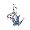 925 Silver Bangle Bracelet with Blue Zircon Beads and Flying Swallow Dangle Pendants Jewelry