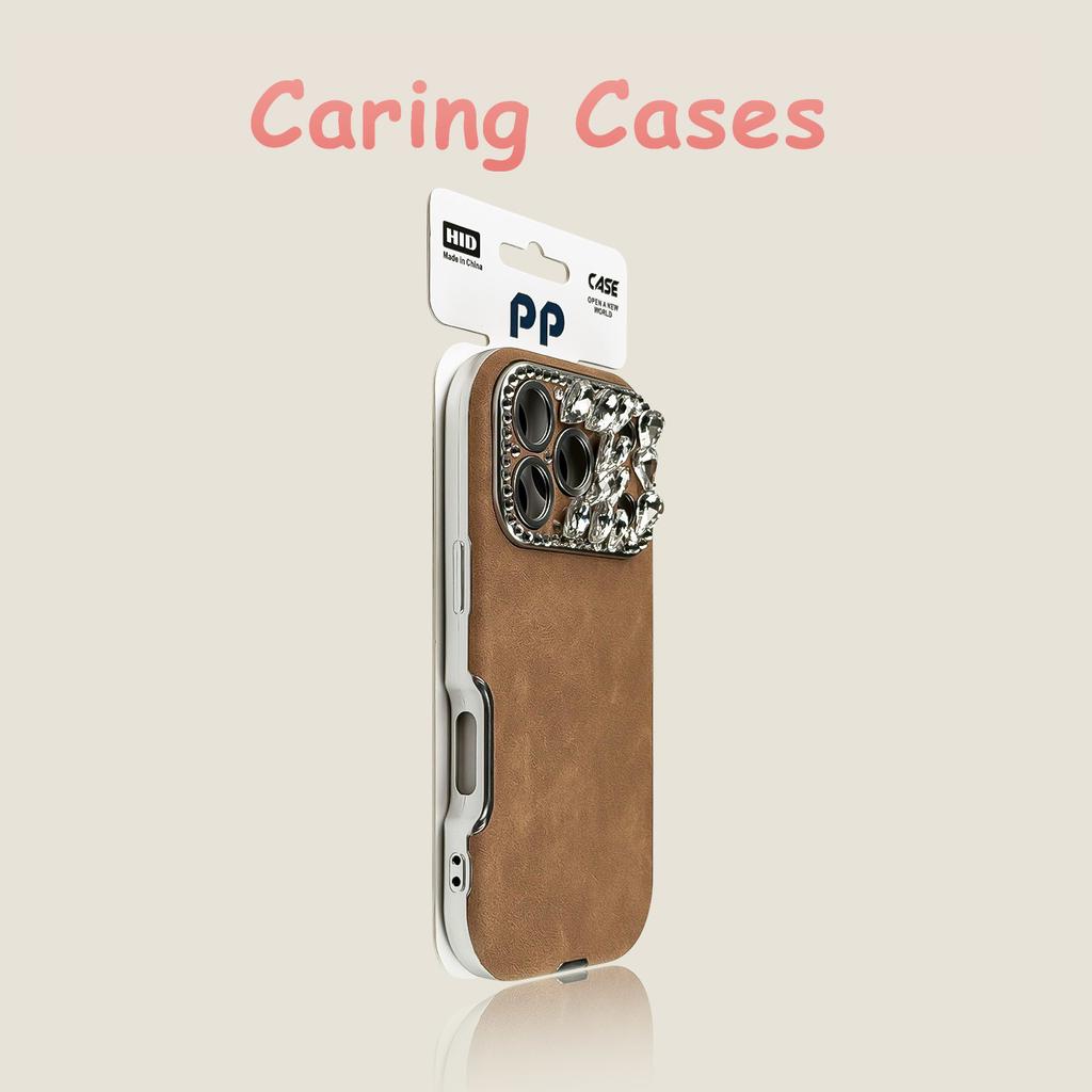 For iPhone 17 Pro Max Case Leather Texture Rhinestone New Anti-Drop Trendy Streetwear Personalized Case with iPhone 16 15 14 13