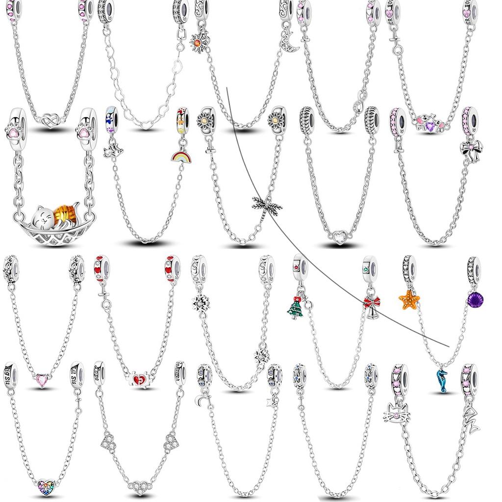925 Silver Butterfly Safety Chain with Zirconium Charms Beads for DIY Bracelet Jewelry Gift
